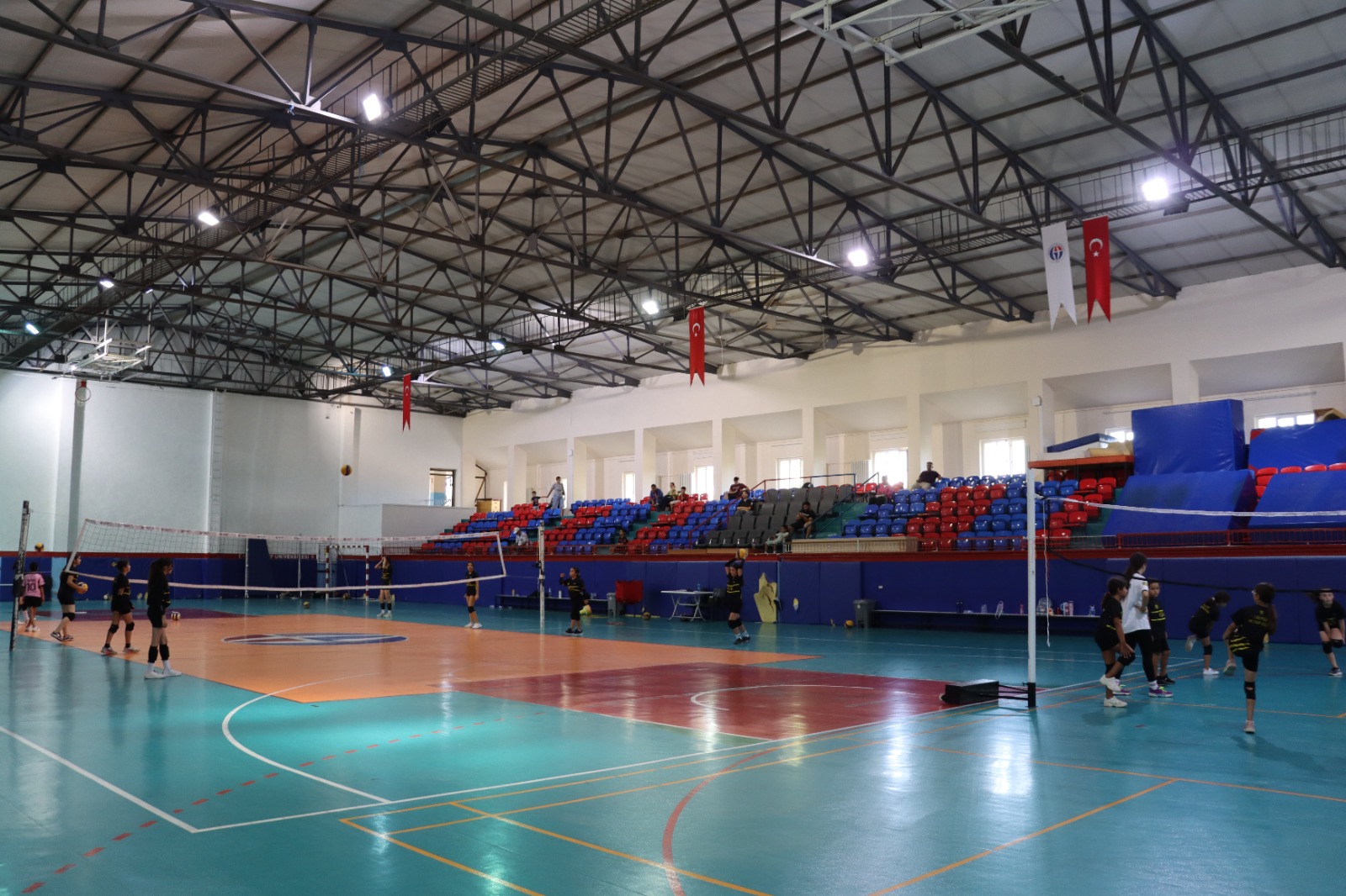 Kapalı spor tesislerimiz kapsamında 1 adet spor salonu bulunmakta olup toplam 6.444 m² alana sahiptir. Bu alan; basketbol, voleybol, hentbol gibi takım sporlarının yanı sıra bireysel antrenmanlar, organizasyonlar ve çeşitli sportif etkinlikler için kullanılmaktadır. Modern donanımı ve geniş iç hacmi sayesinde hem eğitim-öğretim faaliyetleri hem de turnuva ve müsabakalar için uygun bir ortam sağlamaktadır. Kapalı spor salonu, yıl boyunca hava koşullarından bağımsız olarak spor yapma imkânı sunarak öğrencilerimizin düzenli fiziksel aktivite alışkanlığı kazanmalarına katkıda bulunmaktadır.